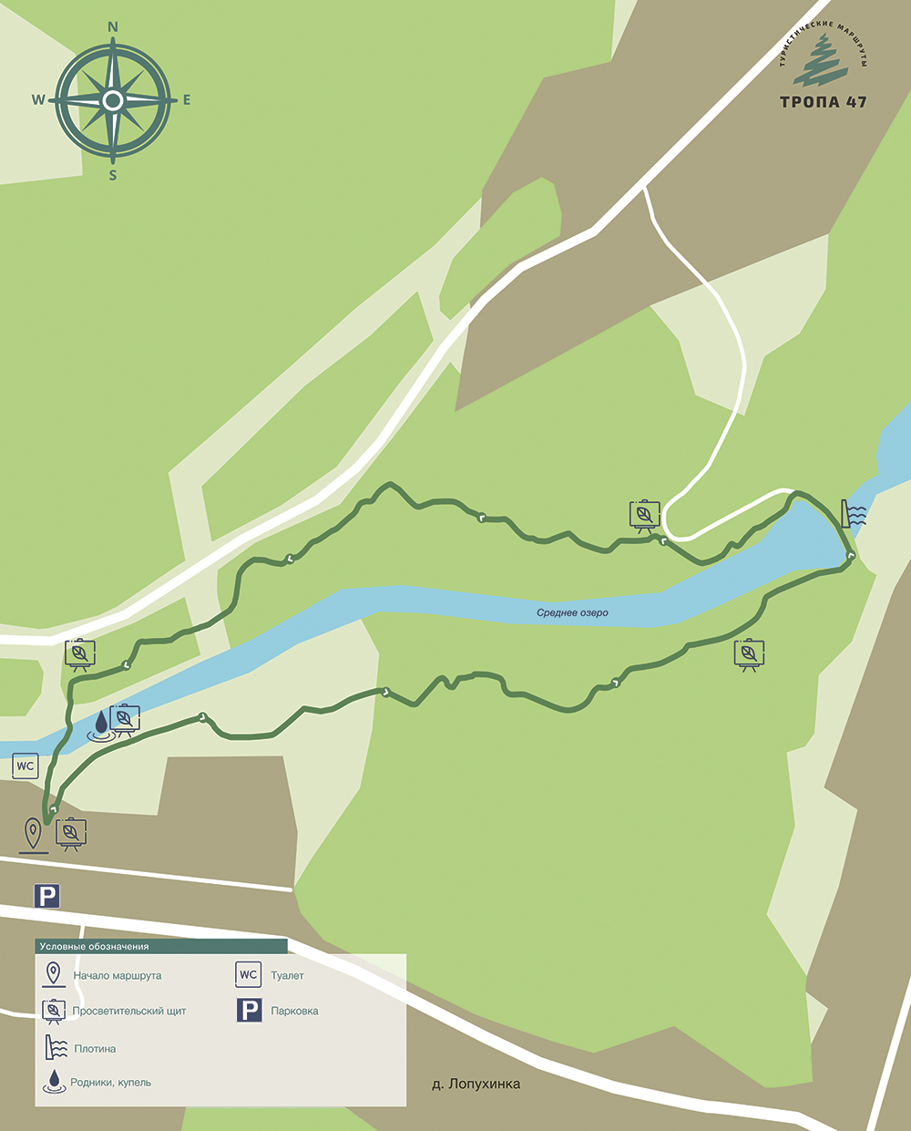 Транспортная доступность: Экотропа начинается в дер. Лопухинка, в 1.85 км от въезда в деревню с востока.
