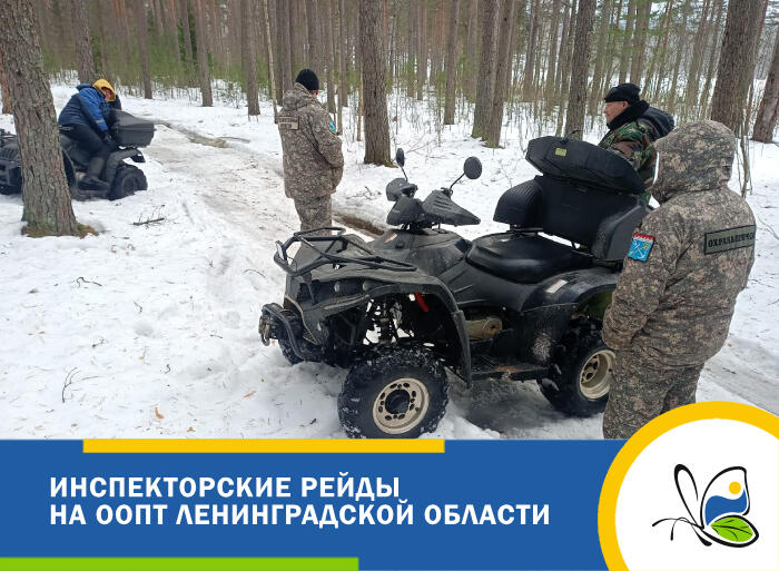 Продолжаются инспекторские рейды на особо охраняемых природных территориях Ленинградской области, в том числе вечерние и ночные. Потеплело, и людей на ООПТ стало гораздо больше, в том числе, к сожалению, и нарушителей. Так, на днях два квадроцикла были остановлены инспекторами прямо на экотропе "Озеро Светлое" в заказнике "Гряда Вярямянселькя", составлены протоколы. Также зафиксировано несколько нарушений в заказнике "Озеро Мелководное", где круглогодично запрещена рыбная ловля.